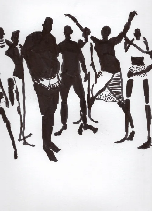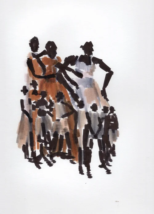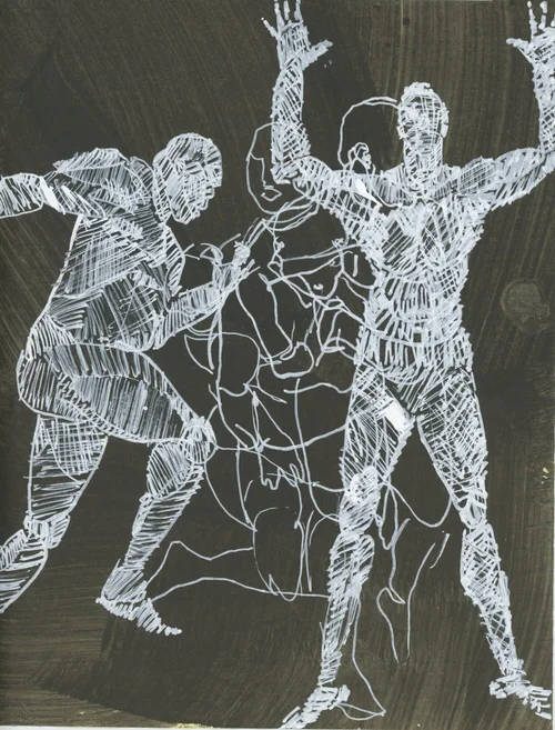 Movement forms the heart of the performance, embodying improvisational research that affirms the body as a repository of knowledge and emotional processing referencing Maxine Sheets-Johnstone's seminal writings on phenomenology and movement. Gesture becomes a powerful medium—a visual language of quick, communicative, and deeply personal expression akin to gesture drawing in visual art. Improvised dance embodies the contours of rage, joy, and euphoria, blending internal experiences with outward expressions. This emotional vocabulary invites the audience to connect on a visceral level, creating a shared space of empathy and understanding. Costuming and comportment serve as tools of self-determination, challenging societal norms of appearance and emotional expression. Masks paradoxically reveal inner truths, individuality and collective identity while advocating bodily agency. By masking, the performers subvert traditional expectations, embracing vulnerability and aggression as acts of empowerment.