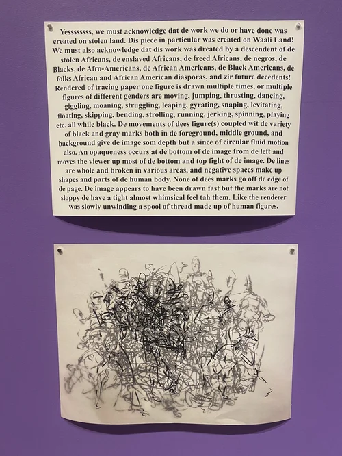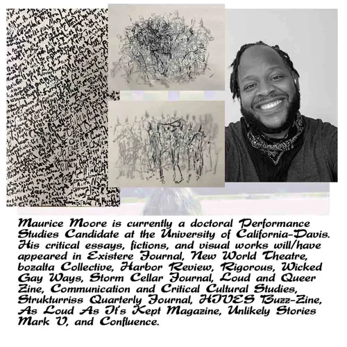 Dr. Maurice Moore is an Assistant Professor of Drawing and Painting at the University of Tennessee, Knoxville. They received a Doctor of Philosophy (PhD) in Performance Studies from the University of California-Davis, and a Master of Fine Arts (MFA) in Studio Art from the University of North Carolina at Greensboro. Published by Versal Journal, and winner of their 2022 Amsterdam Open Book Prize, Maurice Moore’s newest book, Drawing While Black Mixtape Vol 1, is a text composed of visual poems that explore various types of queer mark-making. Their works have also appeared in Communication and Critical Cultural/Studies, Decoded Pride, ObsidianLit, and Poetry Foundation. From 2011 to the present, the creative has exhibited at the Centre for Recent Drawing (C4RD) in London, United Kingdom; Calabar Gallery in New York, NY; Jan Shrem and Maria Manetti Shrem Museum of Art in Davis, California; and the Weatherspoon Art Museum in Greensboro, North Carolina.