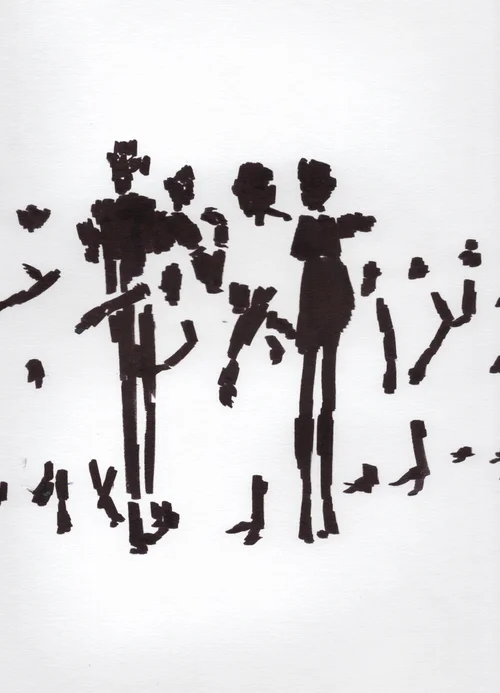 The performance also interrogates the ways emotions are perceived and contained in public spaces. While joy is often deemed socially acceptable, it is frequently subdued, and expressions of rage are marginalized unless carefully framed. This piece challenges such constraints, asking: Can performance be a safe space for exploring rage and aggression without fear of judgment? How can joy, particularly punk-infused joy, serve as a vehicle for processing and transforming complex emotions? Staging alternates between cinematic close-ups and expansive wide shots, guiding the audience through the micro and macro dimensions of the performance. These shifts focus attention on the intricacies of gesture and the collective energy of the performers, creating an immersive experience that bridges the personal and communal.