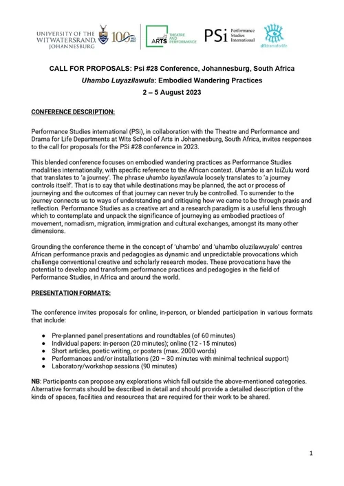 Performance Studies international (PSi), in collaboration with the Graduate Arts Program at Universidade Federal do Ceará in Fortaleza, Brazil, invites responses to the call for proposals for the PSi #30 Conference in 2025.